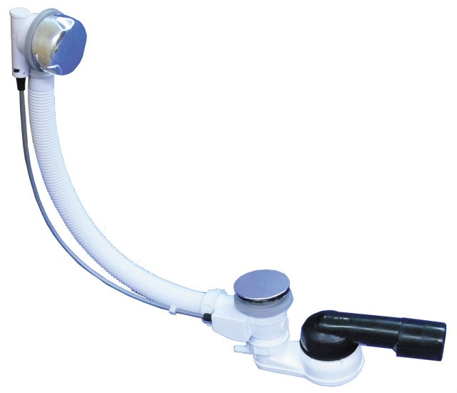 Выпуск-полуавтомат со сливом и переливом для ванн 6/4", с шарнирным сифоном DN50/40 горизонтальный выпуск (выход 280° поворота, 10° наклона) вкл. подсоединение шланга 8 - 13 мм, видимые части - хромированны. Новая улучшенная разработка с новым механизмом зубчатой рейки для точного хода, новая система фиксирования вращающейся ручки, гибкий шланг перелива для легкого монтажа, двойная прокладка для тарелки для слива, трос Боудена из нержавеющей стали (CrNi 18/10) и прочный запирающий механизм для высокой работоспособности трапа и его долгой эксплуатации.