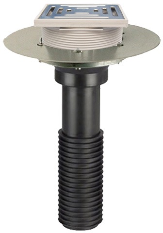 Кровельная воронка с трапом, с гладким ПВХ фланцем для крепления ПВХ мембран, с универсальным вертикальным подсоединением к стальным, чугунным и пластиковым трубам DN 110 или DN 75, DN 125, DN 160.
