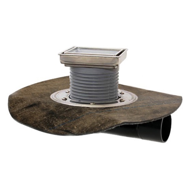 HL80.1H-3020 - трап для внутренних помещений с надставным элементом для вклеивания керамической плитки, с полимербитумным полотном диаметром 420 мм, высотой гидрозатвора 50мм, с поворотным шарниром с поворотом выпускного патрубка от 0 до 90 градусов. Трап HL80.1H-3020 с надставным элементом с подрамником из нержавеющей стали 132х132 мм и вкладышем 112х112 мм для вклеивания керамической плитки предназначен для установки во внутренних помещениях и отвода в канализацию сточных вод с уровня пола и гидроизоляции. Максимальная разрешенная нагрузка 300 кг. Рабочая температура до +85С. Срок службы не менее 50 лет. Высота надставного элемента трапа регулируется от 12 до 70 мм (подрезается по высоте стяжки). Слой гидроизоляции – наплавляемый материал на битумной основе сваривается пламенем пропановой горелки или горячим воздухом с гидроизоляционным «фартуком» трапа с перехлёстом 100-150 мм.