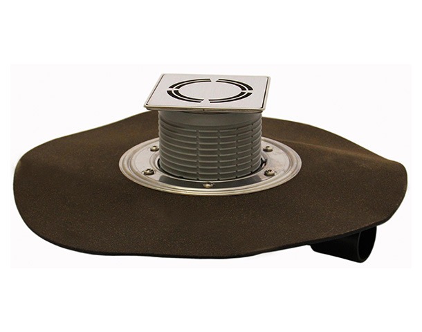 Трап с полимербитумным полотном, дизайн-решеткой "Примус дизайн" из нержавеющей стали 115*115 мм в металлическом подрамнике 121*121 мм, с пропускной способностью - 0,5 л/с, с горизонтальным выпуском DN 40/50.