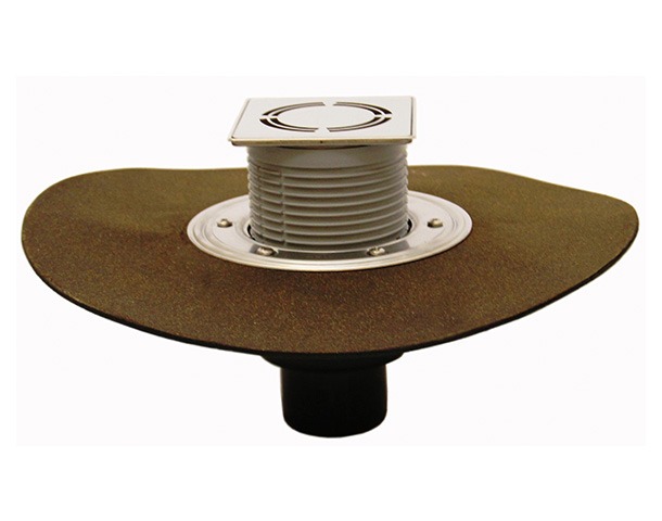 Трап с gолимербитумным полотном, дизайн-решеткой "Примус дизайн" из нержавеющей стали 115*115 мм в металлическом подрамнике 121*121 мм, с пропускной способностью - 0,5 л/с, с вертикальным выпуском DN 50/75/110.