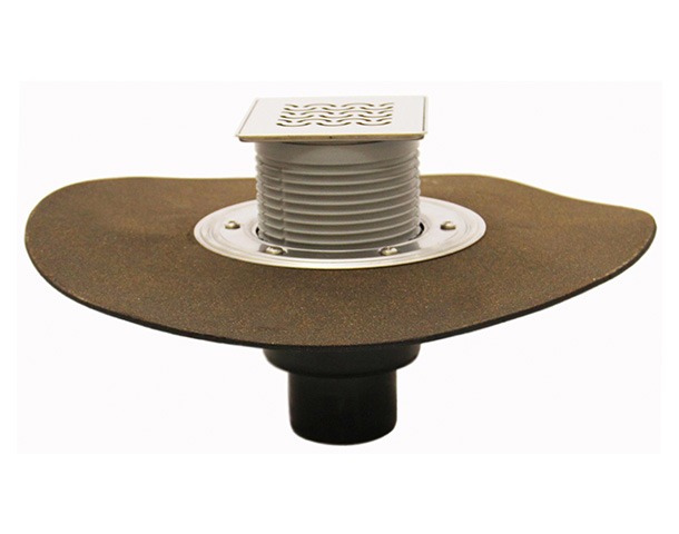 Трап с полимербитумным полотном, дизайн-решеткой "Сена" из нержавеющей стали 115*115 мм в металлическом подрамнике 121*121 мм, с "сухим" сифоном "Primus", с пропускной способностью - 0,5 л/с, с вертикальным выпуском DN 50/75/110.