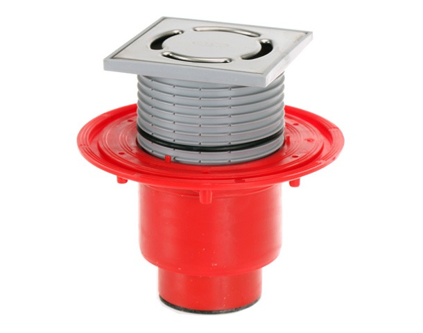 Трап с решеткой из нержавеющей стали 115*115 мм в пластиковом подрамнике 123*123 мм, с "сухим" сифоном "Primus", с пропускной способностью - 0,5 л/с, и вертикальным выпуском с манжетой для соединения с SML трубой диаметром - DN 50 мм.
