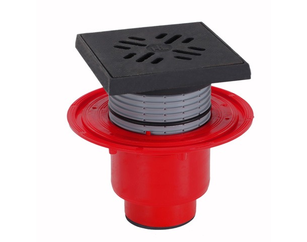 Трап с решеткой из чугуна 137*137 мм в чугунном подрамнике 150*150 мм, высотой гидрозатвора 50мм, с пропускной способностью - 0,67 л/с, и вертикальным выпуском с манжетой для соединения с SML трубой диаметром - DN 50 мм.