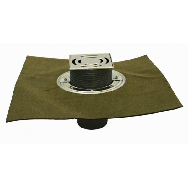 Трап для внутренних помещений DN75 вертикальный с гидроизоляционным полимербитумным манжетом, служащим как идеальное битумное изоляционное соединение, с морозоустойчивым, а также устойчивым к пересыханию запахозапирающим клапаном, со снимаемым надставным элементом 12-75мм/145х145мм и решёткой из нержавеющей стали 138х138мм. В комплекте 2 монтажные заглушки и крепёжные лапки.