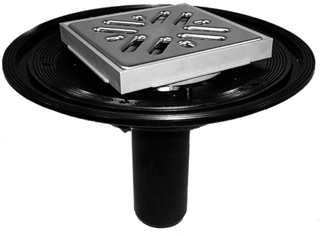 Трап для балконов и террасс DN40 вертикальный с обжимным фланцем, со снимаемыми насадными подрамниками 12 - 38мм / 100х100мм, песколовкой, решеткой из нержавеющей стали 94х94 мм. Строительная защита во время монтажа в комплекте.