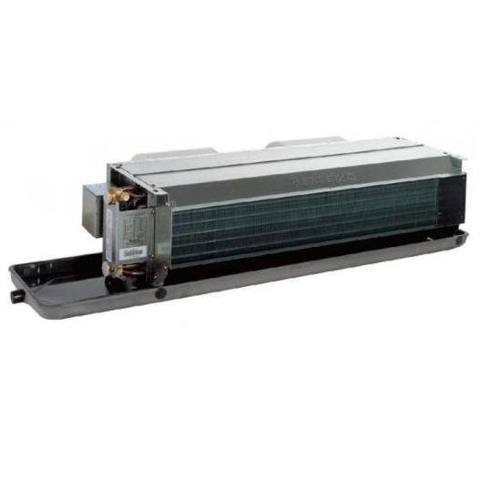 Канальные фанкойлы обычно размещаются скрытно за подвесным потолком или в смежных технических помещениях. С обслуживаемым помещением соединяются системой каналов — воздуховодов, отсюда и получили своё название. Не комплектуется пультом управления и 3х ходовым клапаном.
