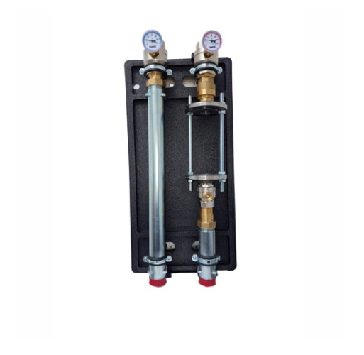 - шаровой кран с термометром в рукоятке (красный/синий – подача/обратка).