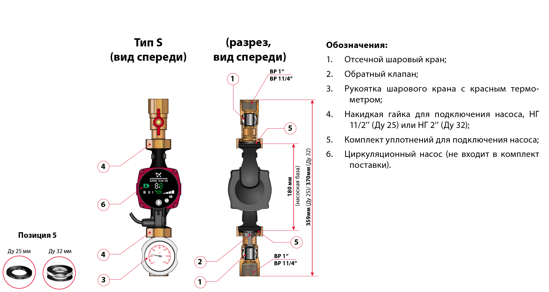 Комплект S 1” с насосом UPS 25-60 и интегрированным обратным клапаномМЕ 61130.1 UPS 25-60