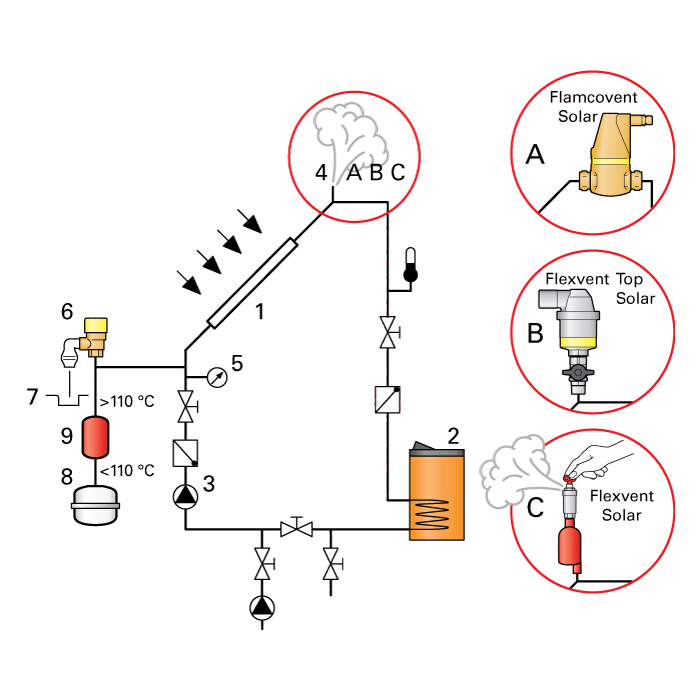 Вода в системе содержит воздух, который приводит к коррозии и снижению теплопроводных характеристик. Flexvent устанавливается в местах скопления воздуха. Работа устройства основана на поплавковом принципе: воздух, попадающий внутрь Flexvent, понижает уровень воды внутри клапана, опуская поплавок, который открывает клапан выпуска воздуха. При выпуске воздуха уровень воды внутри клапана повышается, поплавок всплывает и закрывает клапан.