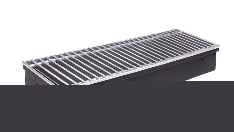 Встраиваемый в пол конвектор Kermi GmbH KVN шириной 230 мм, высотой 200 мм, длиной 2500 мм, короб конвектора изготовлен из оцинкованной стали и окрашен износостойким порошковым покрытием, медно-алюминиевый съемный теплообменник оснащен латунным коллектором с соединением «евроконус» G 3/4‘‘ и воздухоспускным клапаном. Тип KVN, теплопроизводительность 1765 Вт, максимальное рабочее давление: 16 бар, испытательное 25 бар, рабочая температура: макс 130 °C. В стандартном исполнении конвекторы поставляются с продольной алюминиевой решеткой.