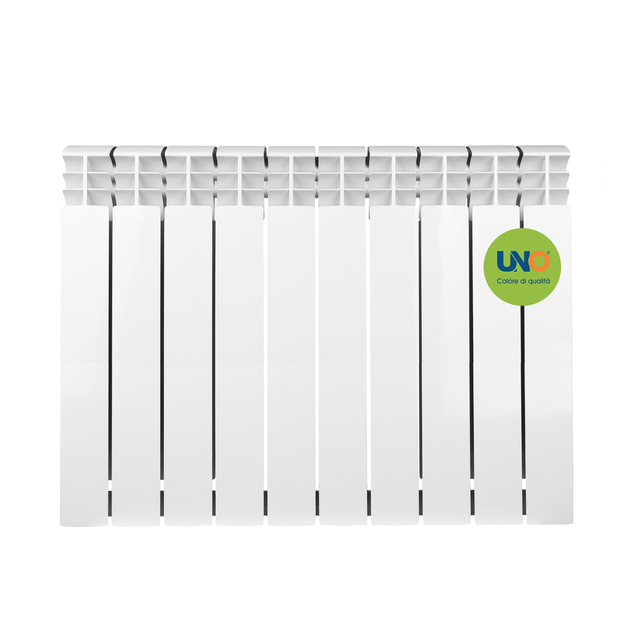 Алюминиевые радиаторы UNO изготовлены по итальянской технологии из высокопрочного алюминиевого сплава, путем литья под давлением. Покрыты антикоррозийным покрытием и окрашены белой порошковой эмалью с по- следующим обжигом в печи. Производство, испытания. отделка данной модели объединены в единый процесс высокого технологического уровня. Каждая секция радиатора проходит проверку на прочность при давлении 24 атмосферы. В заводской упаковке поставляются 10 секционные радиаторы.