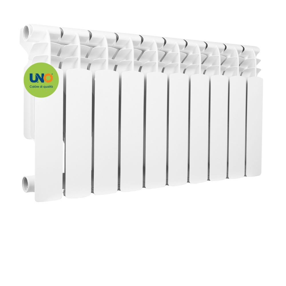 Алюминиевые радиаторы UNO изготовлены по итальянской технологии из высокопрочного алюминиевого сплава, путем литья под давлением. Покрыты антикоррозийным покрытием и окрашены белой порошковой эмалью с по- следующим обжигом в печи. Производство, испытания. отделка данной модели объединены в единый процесс высокого технологического уровня. Каждая секция радиатора проходит проверку на прочность при давлении 24 атмосферы. В заводской упаковке поставляются 10 секционные радиаторы.