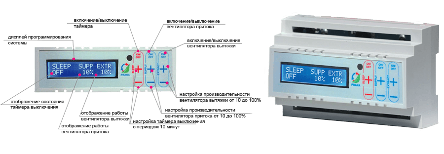 Ко всем модификациям блоков управления системой вентиляции PRANA-250 предлагается дистанционный пульт управления (входит в стандартную комплектацию).