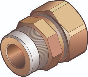 Комплект концевого фитинга с самоуплотняющимся кольцом из PTFE (тефлон), 20 мм х НР 1"+PTFE