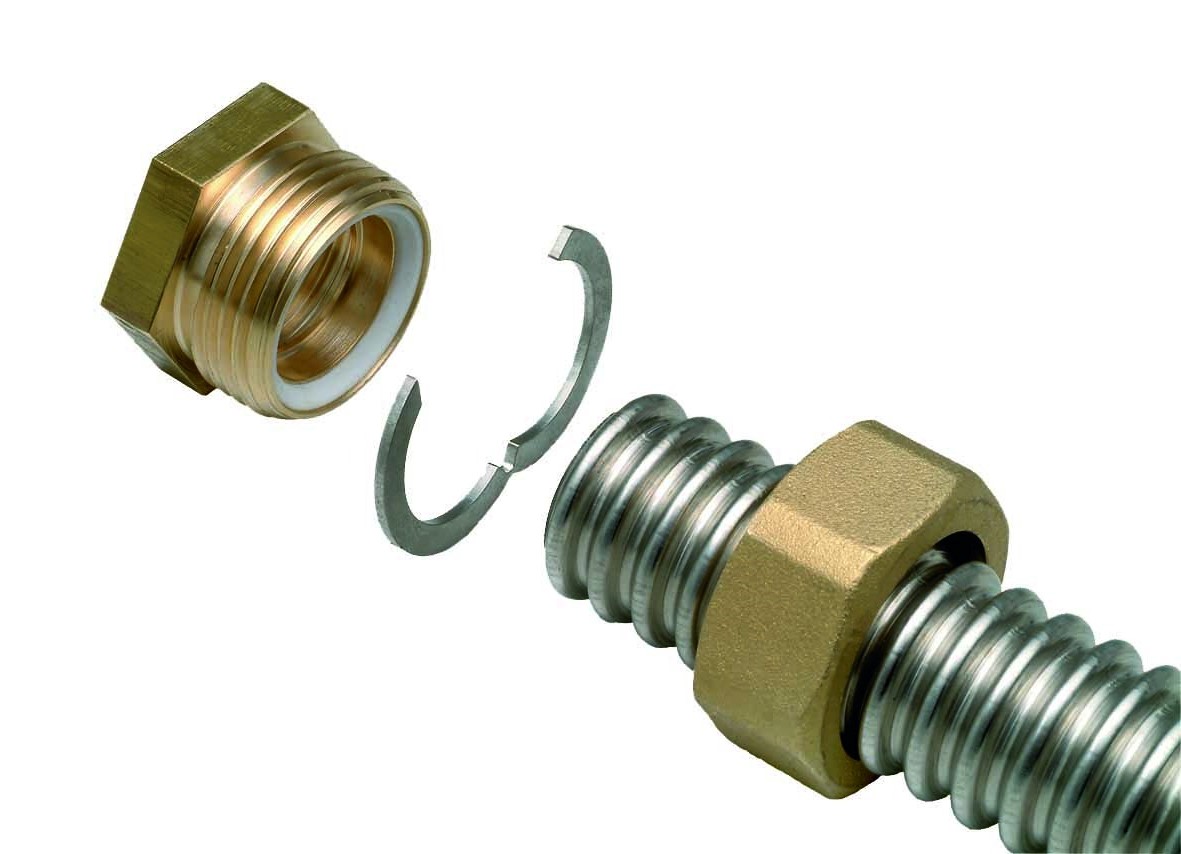 Комплект концевого фитинга FixLock применяется для получения на окончании трубы InoFlex резьбового соединения с внутренней резьбой. Окончание можно получить без применения специального инструмента с помощью обычных ключей.