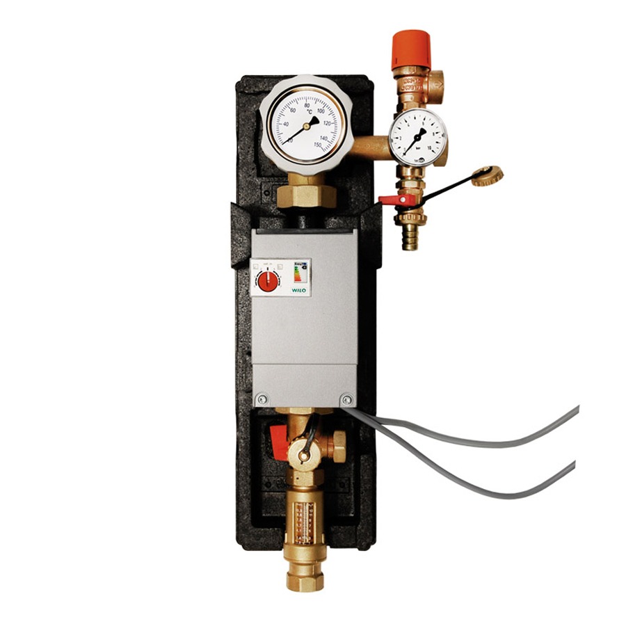 Предназначена для обеспечения циркуляции теплоносителя в гелиоконтуре площадью до 12 м2(в зависимости от параметров системы). Также группа позволяет регулировать расход теплоносителя, гидравлически отсекать насос от гелиоконтура, имеет подключение для расширительного сосуда, патрубки для заполнения и обезвоздушивания гелиоконтура при помощи станции заполнения системы, индикации текущего давления теплоносителя, сброс излишнего давления.
