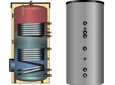 Низкотемпературный контур идущий от солнечных коллекторов, либо теплового насоса подходит к нижнему теплообменнику к самой холодной зоне. Теплоноситель более высокой температуры из системы отопления, теплоснабжения или другого источника поступает к верхнему теплообменнику. Холодная вода поступает из системы холодного водоснабжения, через патрубки холодного водоснабжения, в бак и, благодаря теплообмену, разогревается и накапливается. При начале водоразбора, через патрубок горячего водоснабжения, разогретая вода поступает в систему ГВС. Для обеспечения комфортного потребления воды есть отдельно выход под линию рециркуляции.
