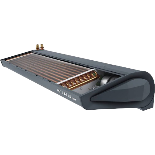 Водяные воздушные завесы VTS WING DARK II W200 EC серии WING DARK II - это устройства, задачей которых является создание невидимого воздушного барьера, отделяющего воздух внутри помещения от наружного воздуха. Минималистичная форма корпуса воздушной завесы WING, вдохновленная формой крыла планера, и элементы корпуса в форме граней бриллианта придают завесе неповторимую гармонию и элегантность. Энергоэффективный двигатель, производительный вентилятор и двухрядный нагреватель обеспечивают низкий уровень шума и максимальную эффективность устройства. Воздушная завеса WING теперь доступна в новом цвете — RAL7016.
